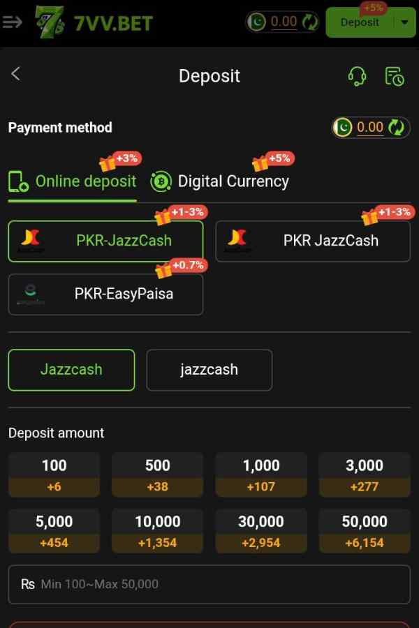 Depositing money into the 7VV Bet Game is quick and convenient: